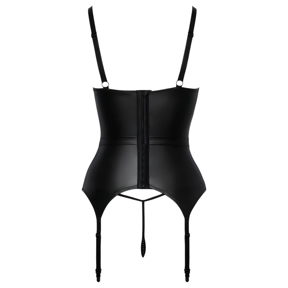 Vadító csipke és fényes anyag párosítása teszi ezt a nyitott mellemelő szettet igazán ellenállhatatlanná, amelyhez egy szexi, nyitott tangát is kapsz!