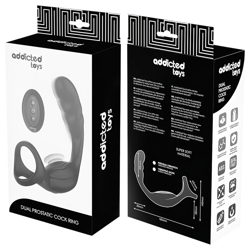 Ez a dupla stimulációs prosztata vibrátor azoknak készült, akik teljesebb élményre vágynak: a pénisz- és heregyűrű fokozza az erekciót és a teljesítményt, míg az ívelt kar precízen célozza a P-pontot, így az élvezet mélyebb és tartósabb.