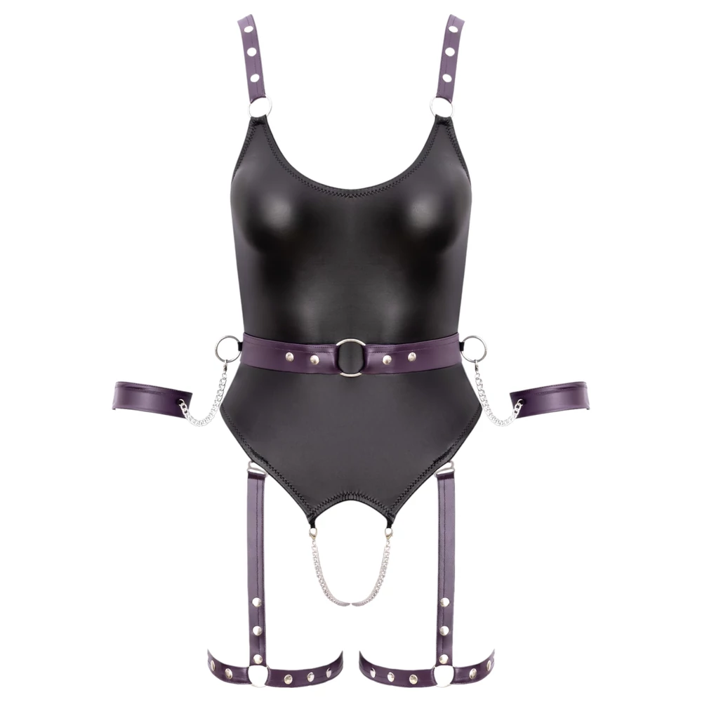 Ez a kifinomult, mégis vadító fétis body tökéletes választás, ha szeretnél kilépni a komfortzónádból és felfedezni a bondage világát – stílusosan. A kényelmes, puha és rugalmas anyag tökéletesen simul a testre, miközben izgató részleteivel (láncok, gyűrűk, bilincsek) minden érzékszervedet stimulálja. Nyitott kialakításának köszönhetően nem kell vetkőznöd az élvezetért, így tökéletes egy izgalmas domináns vagy alárendelt játékhoz.