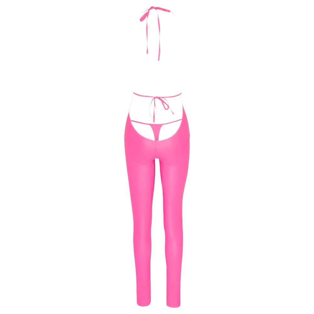 Extra mély hátkidolgozással készült, különleges, fényes overall, mely a hozzá illő tangával ékesíti a hátat, annak vonalát kiemelve.