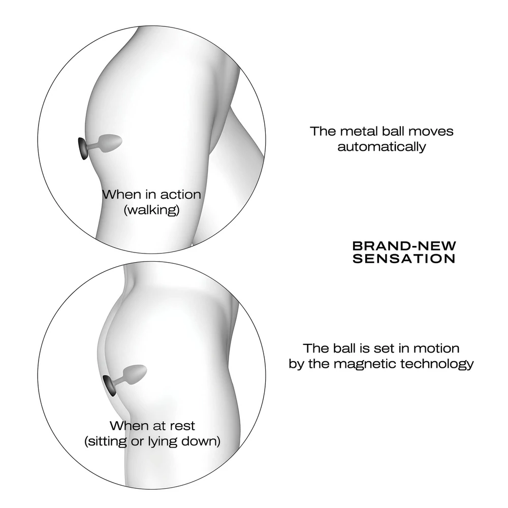 Helyezd fel óvatosan, és érezd, ahogy a belső fémgolyó mozgása finom vibrációkat kelt, amikor mozogsz. Nyugalmi helyzetben (ülve vagy fekve) a mágneses technológia aktiválja a golyót, extra stimulációt nyújtva.