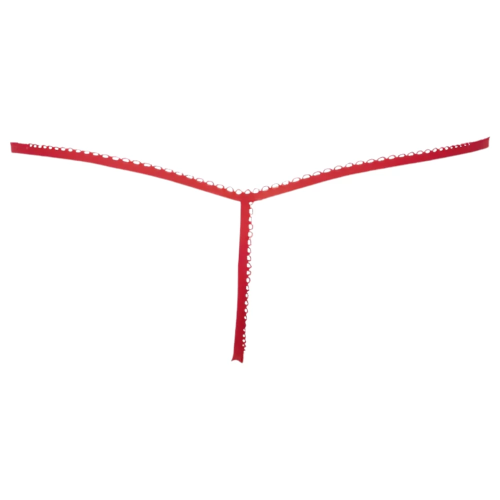 - 1 db piros metálszínű tanga fehér tollas díszítéssel