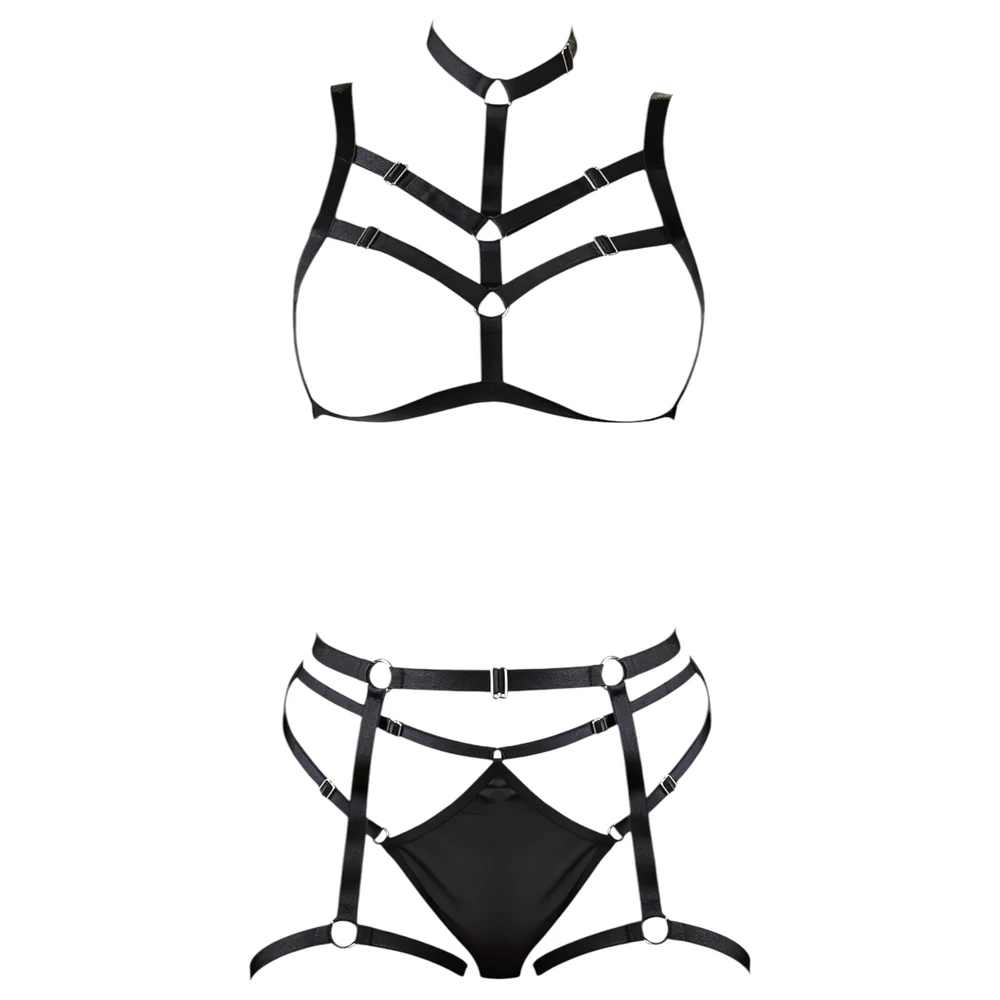 Cottelli - dísz testhám fehérnemű trió - fekete (S-L)