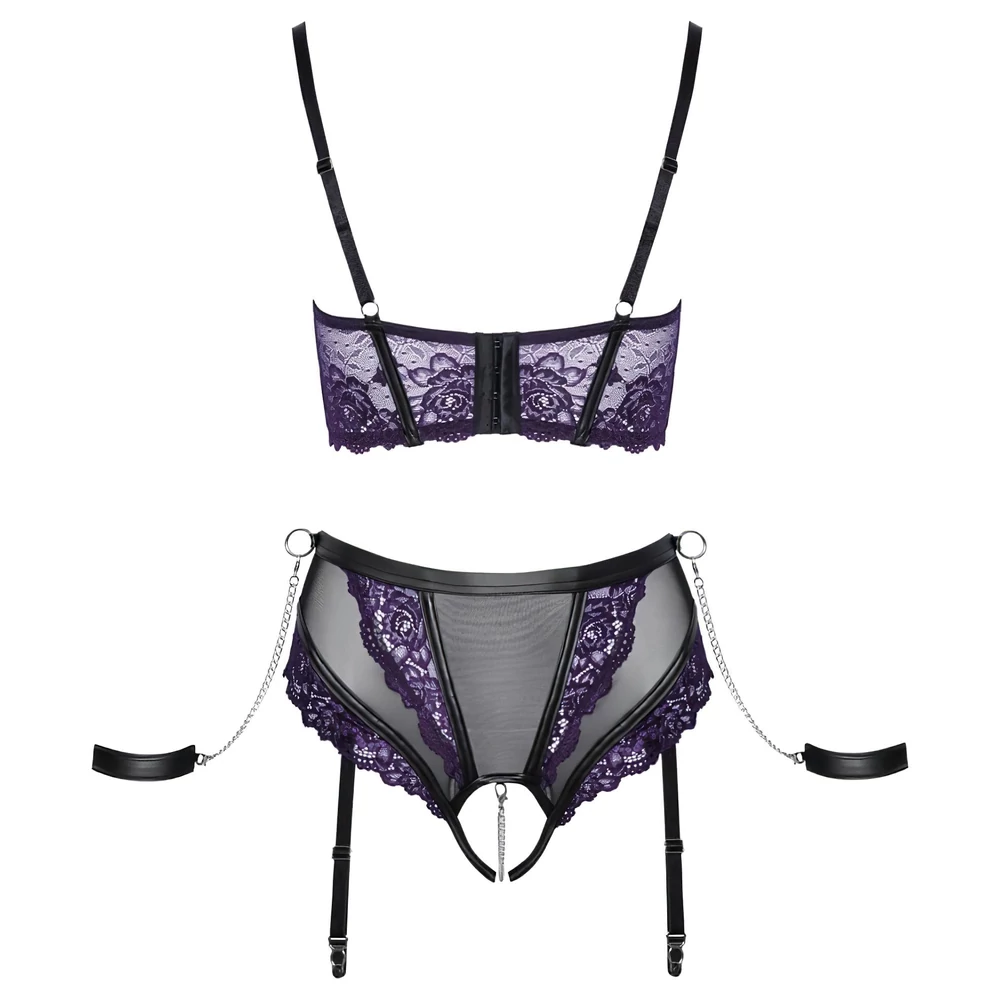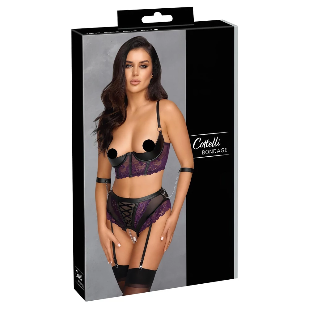 Cottelli Bondage - melltartó szett és kar bilincs (fekete-lila)