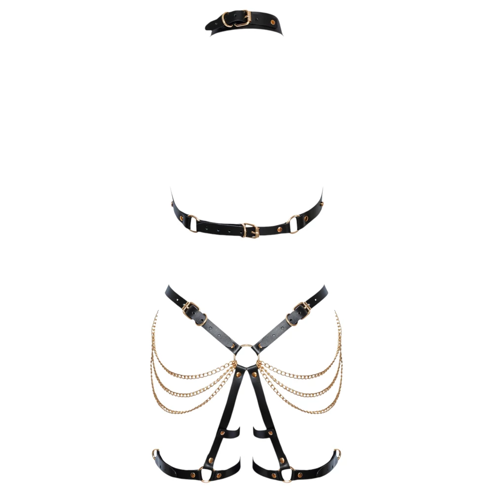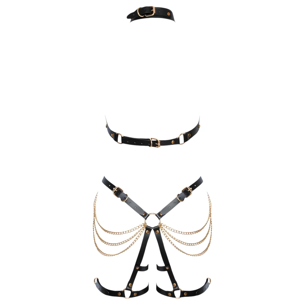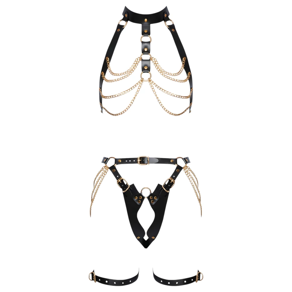 ZADO - 2 részes bőr hám szett (fekete-arany)