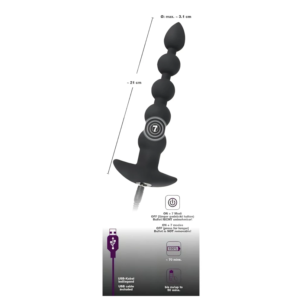 Black Velvets - akkus 5 gyöngyös anál vibrátor (fekete)