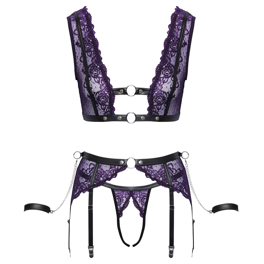 - Bondage-ready kialakítás: a melltartón és a harisnyatartón elhelyezett fém karikák lehetővé teszik, hogy karrögzítőket csatolj hozzá—így a fehérnemű maga is része a játékmechanikának.