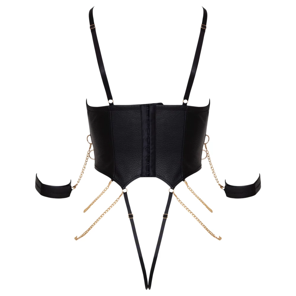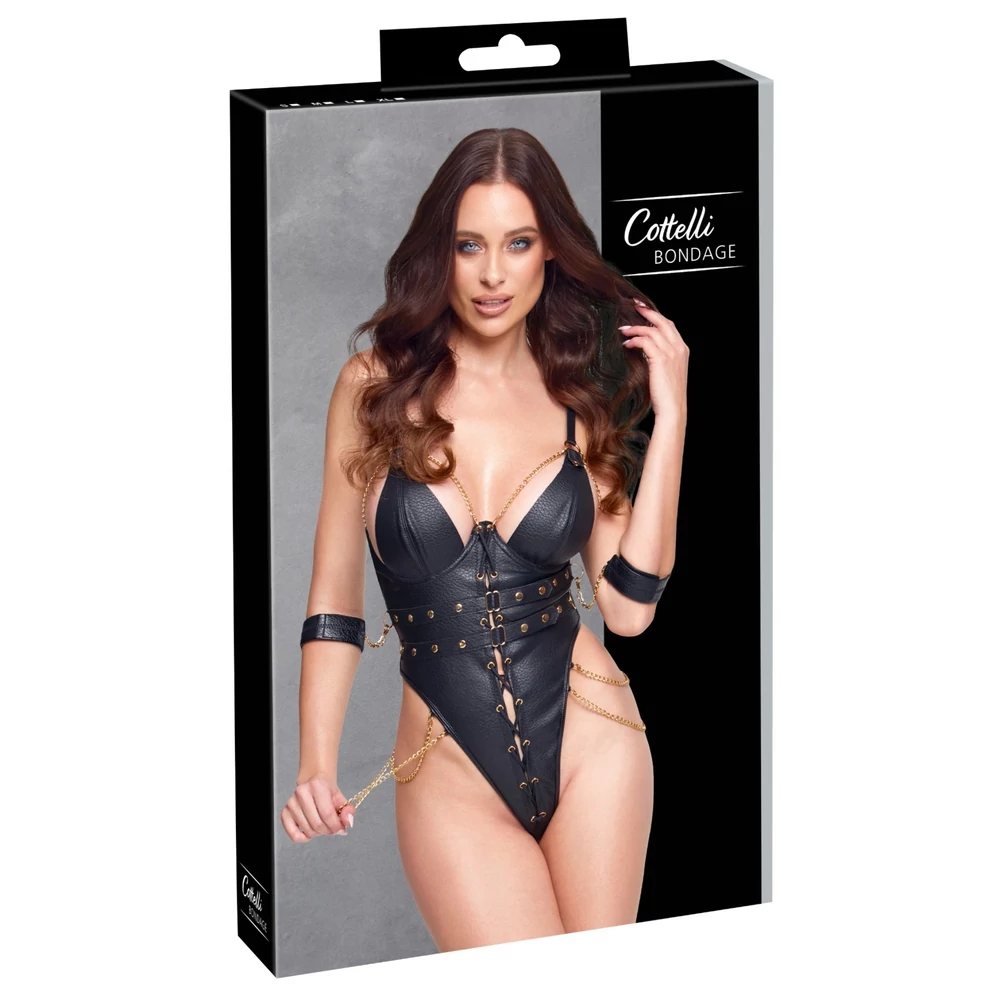 - Komplett bondage szett egyetlen darabban – body + kézmegkötözők + láncocskák egyszerre