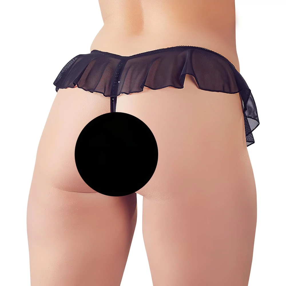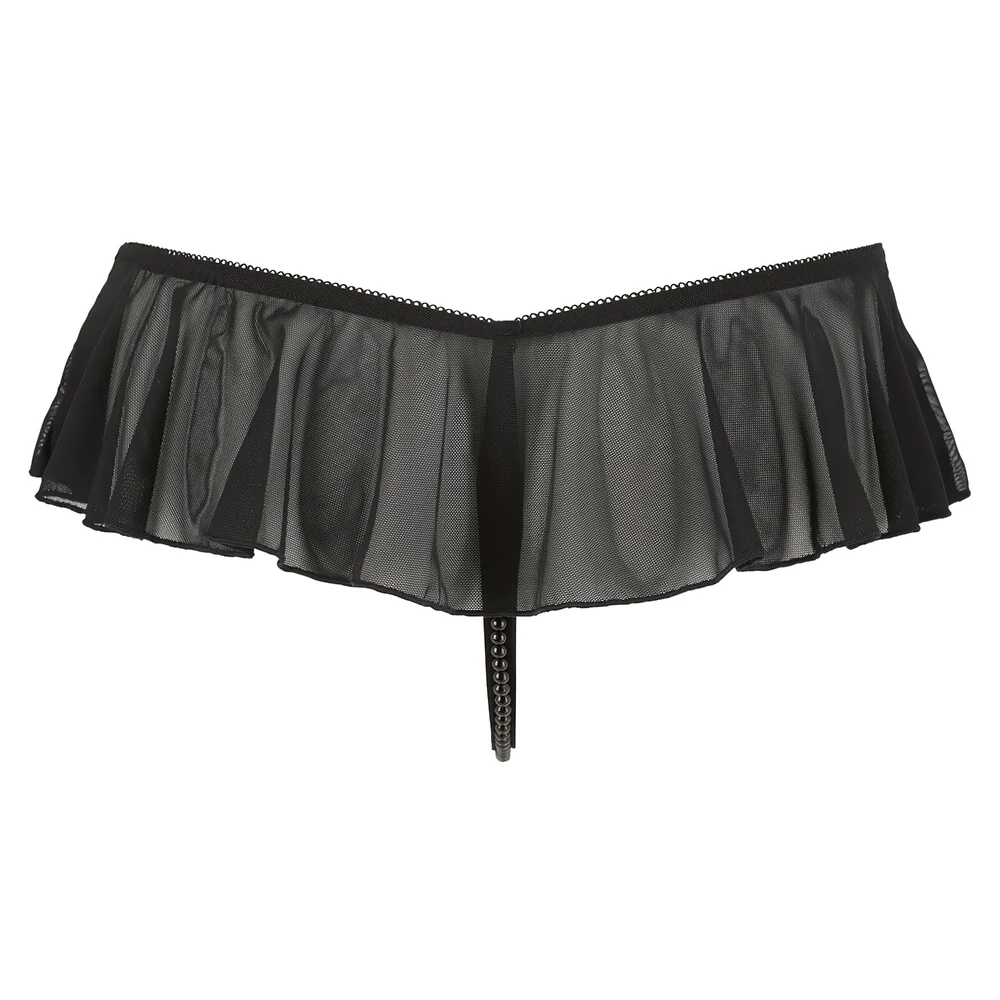 Cottelli - nyitott, gyöngyös fodros tanga (fekete)