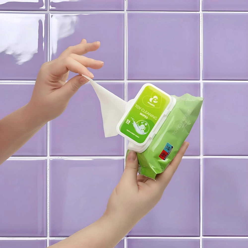 Az EasyGlide - szexjáték törlőkendő (25db) gyors és higiénikus megoldást nyújt kedvenc játékaid tisztán tartására!