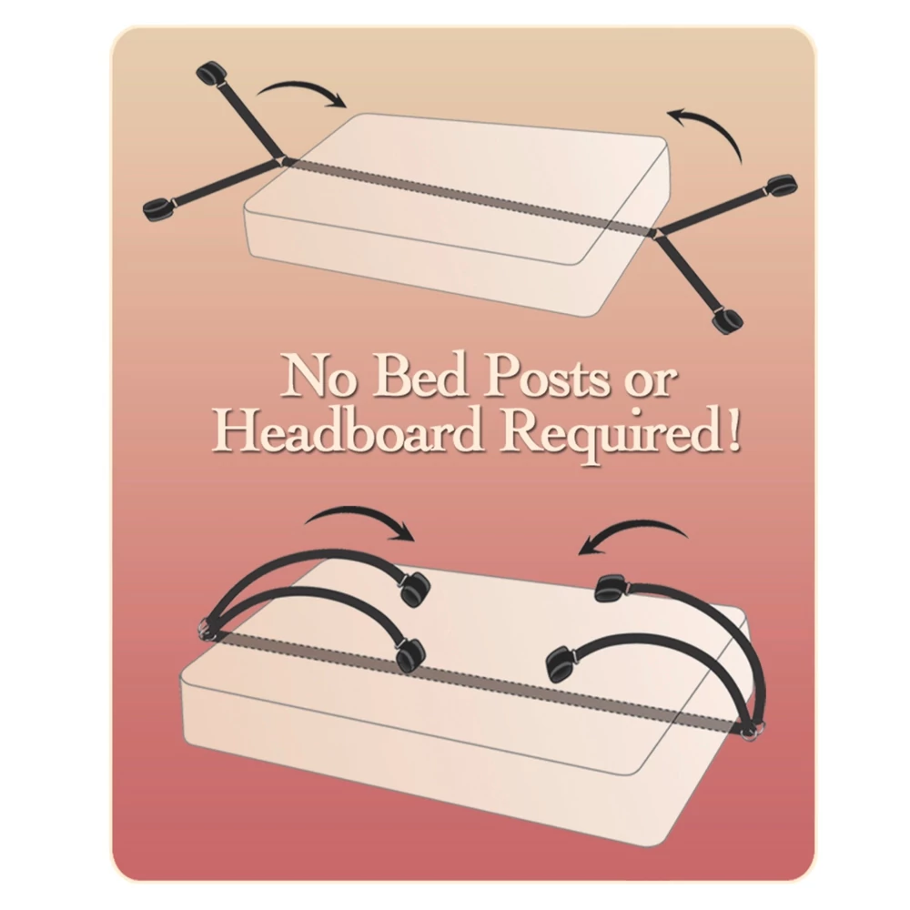 Helyezd a rögzítőrendszer központi részét a matrac alá, majd igazítsd a pántokat az ágy négy sarkához. Rögzítsd a csukló- és bokapántokat a kívánt feszességgel. A szemkötővel még intenzívebbé tehetitek az élményt. Mindig beszéljetek meg biztonsági szót a játék előtt.