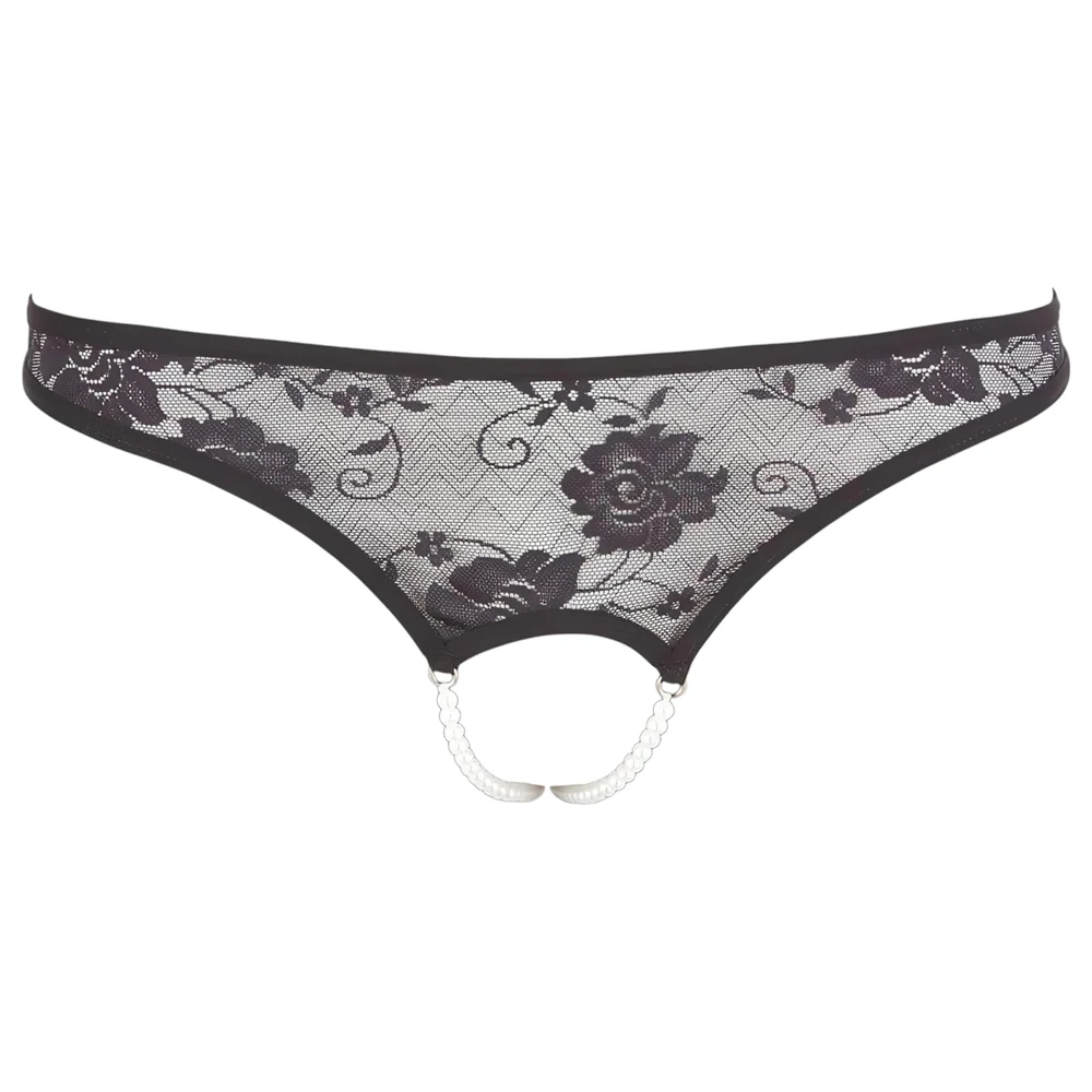 Cottelli - Gyöngyös, nyitott csipke tanga (fekete)