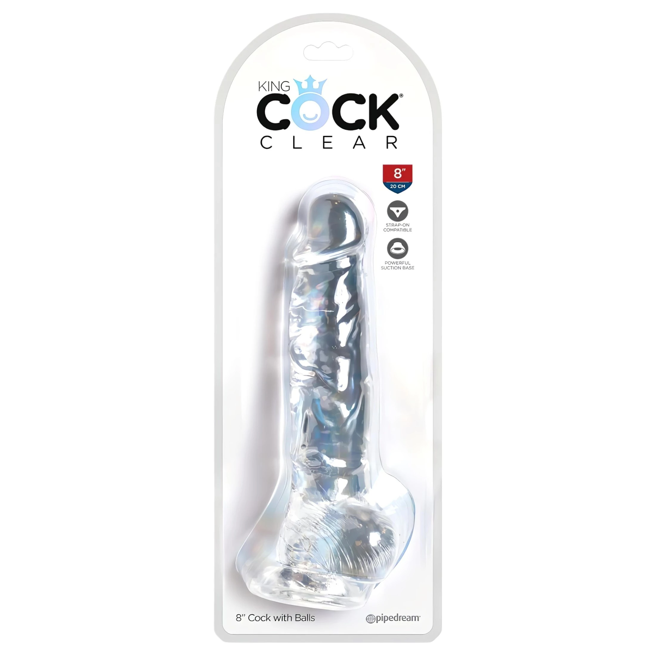 King Cock Clear 8 - tapadókorongos, herés dildó (20cm)