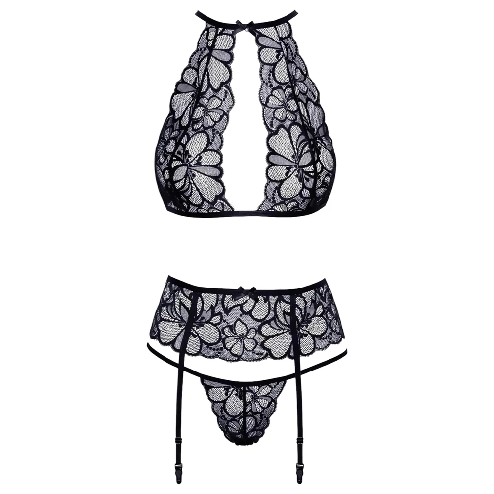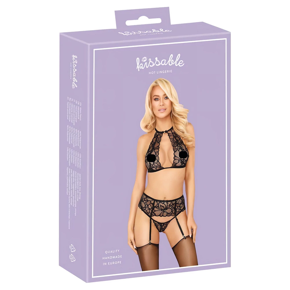 Kissable - nyakpántos, csipke melltartó szett (fekete)