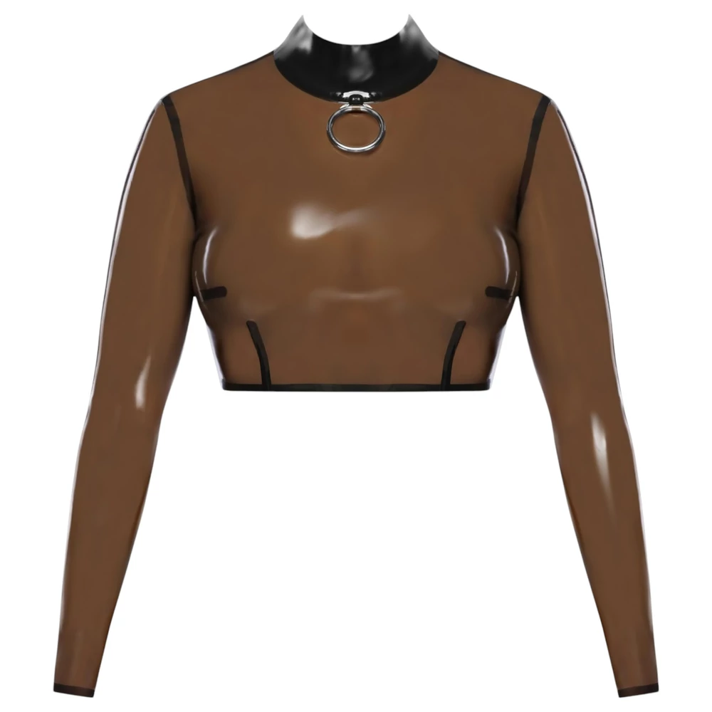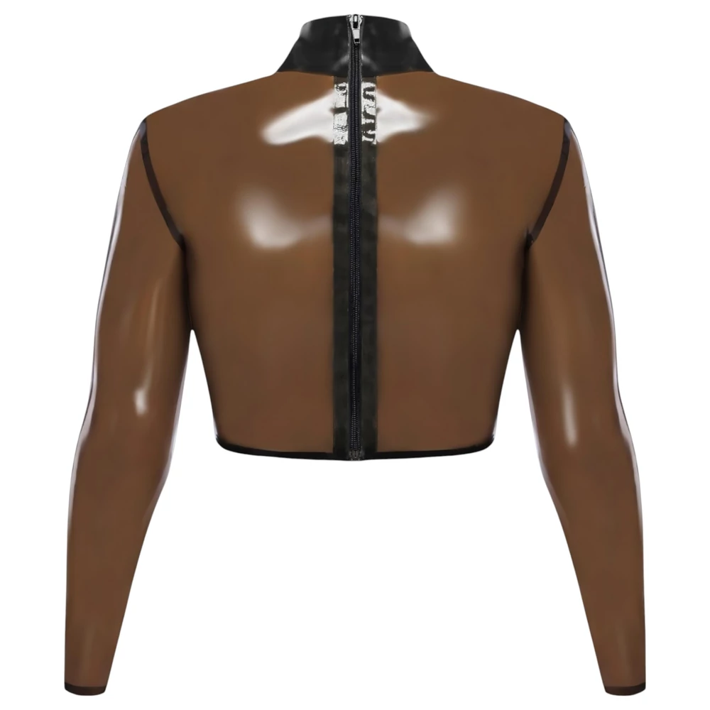 - 1 darab áttetsző, hosszú ujjú latex crop top fémgyűrűs nyakkal
