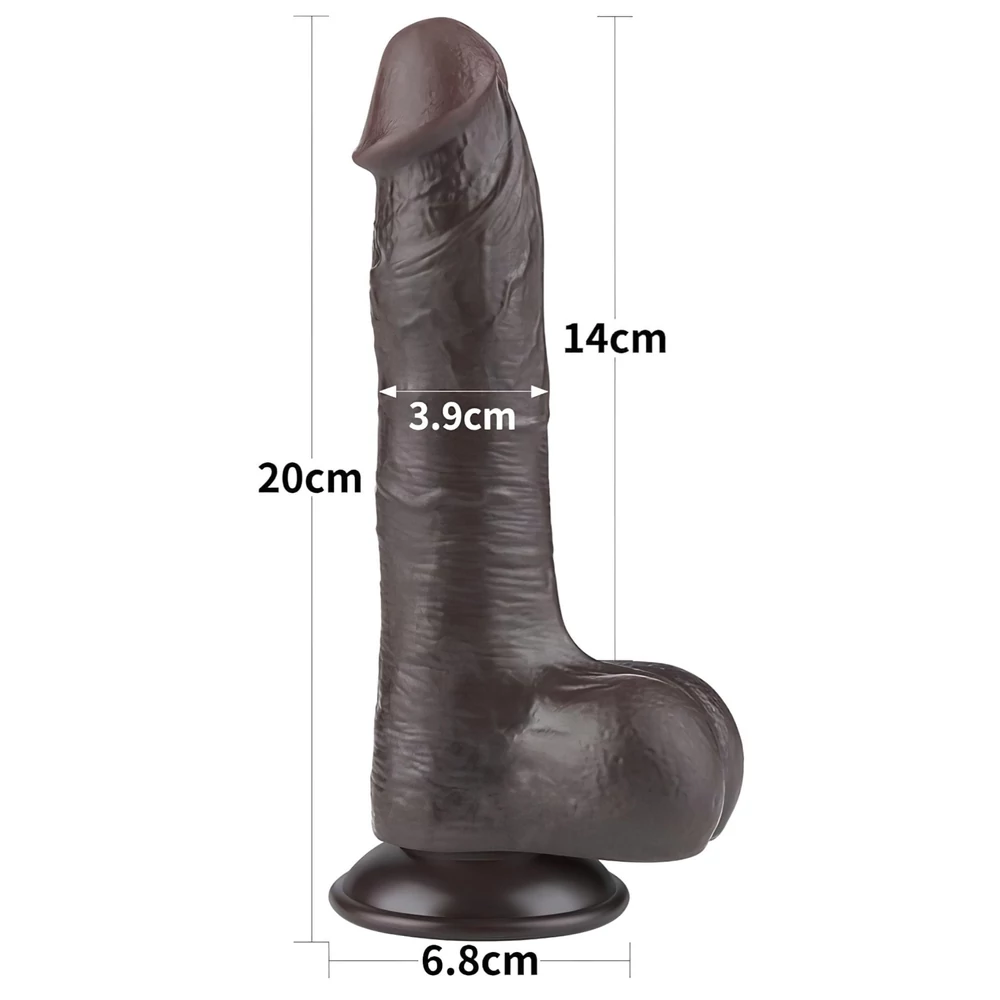 A Lovetoy Sliding-Skin - herés kétrétegű dildó - 20cm (barna) egy élethű, tapadókorongos dildó prémium kétrétegű TPE anyagból, amely a természetes érzetet és az intenzív élményt ötvözi.