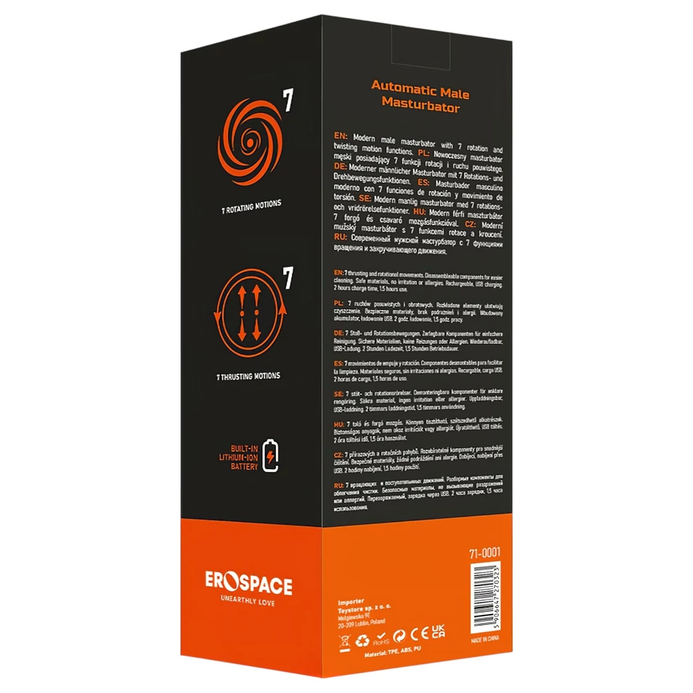 Töltsd fel a készüléket a mellékelt USB-kábellel, majd használj bőséges mennyiségű vízbázisú síkosítót a belső betét védelme és a maximális élmény érdekében. Válaszd ki a számodra legkellemesebb forgó-lökő programot, és fokozatosan növeld az intenzitást.