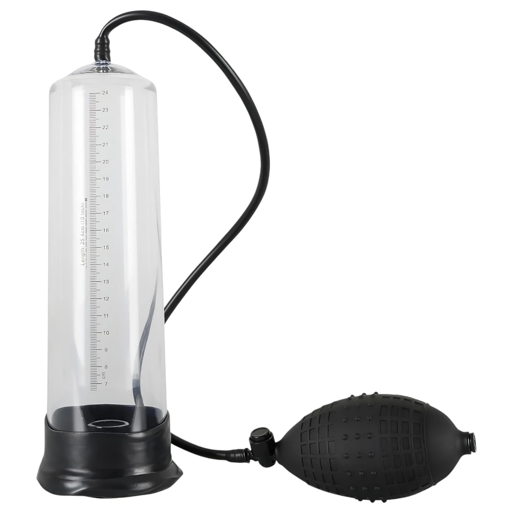 Helyezd a péniszt a rugalmas szilikon mandzsettával ellátott hengerbe, majd kezd el pumpálni a labdás karral. A keletkező vákuum vérbőséget okoz, így az erekció gyorsabban kialakulhat. A henger oldalán található skálán követheted a változást. A levegő kiengedéséhez használd a pumpán lévő leeresztő szelepet.