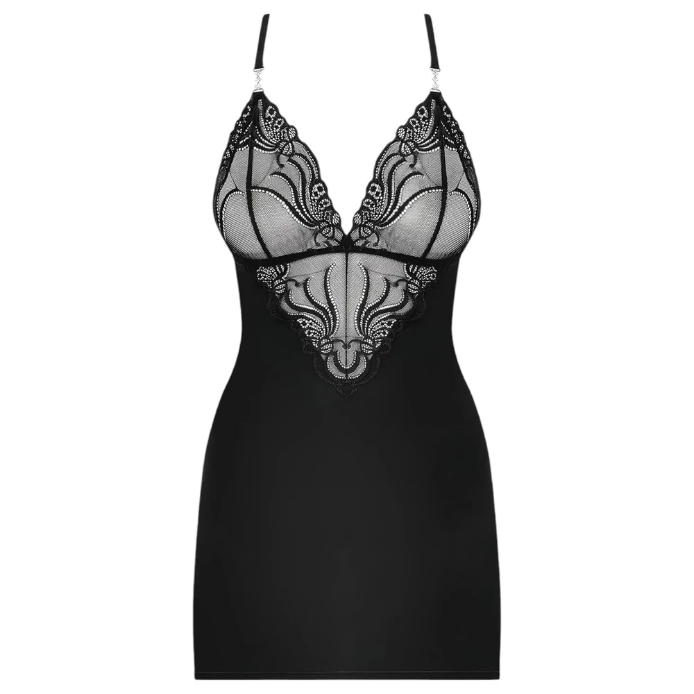 Obsessive 828-CHE-1 - strasszos pántos ruha és tanga (fekete)