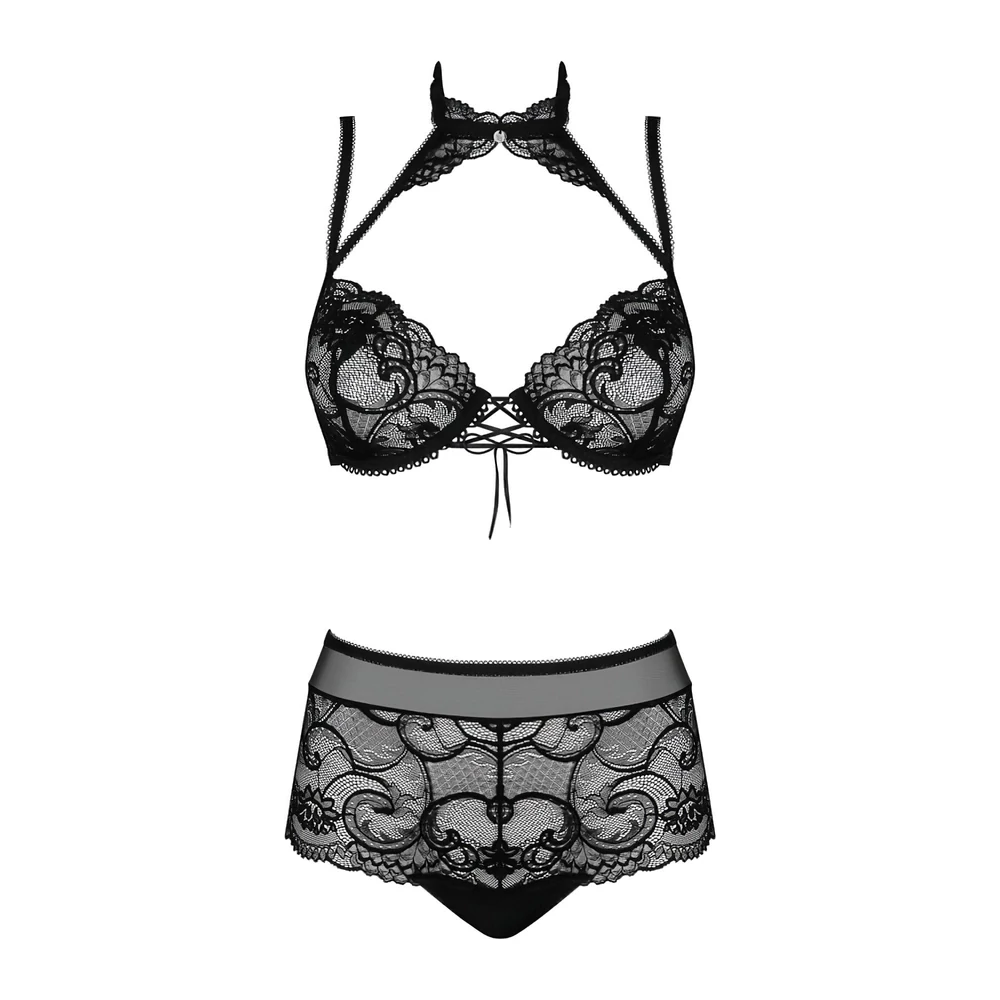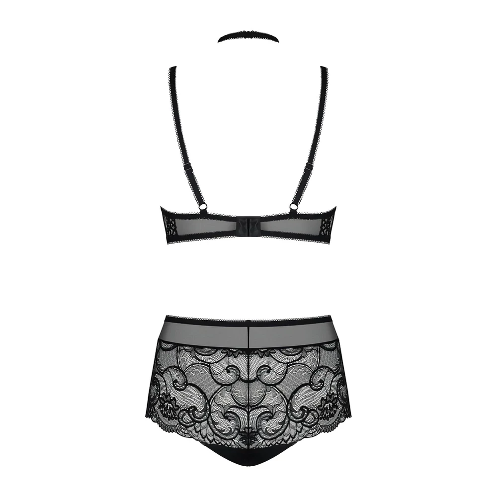 Obsessive Elizenes - mintás, átlátszó melltartó szett (fekete)