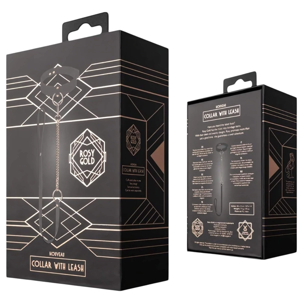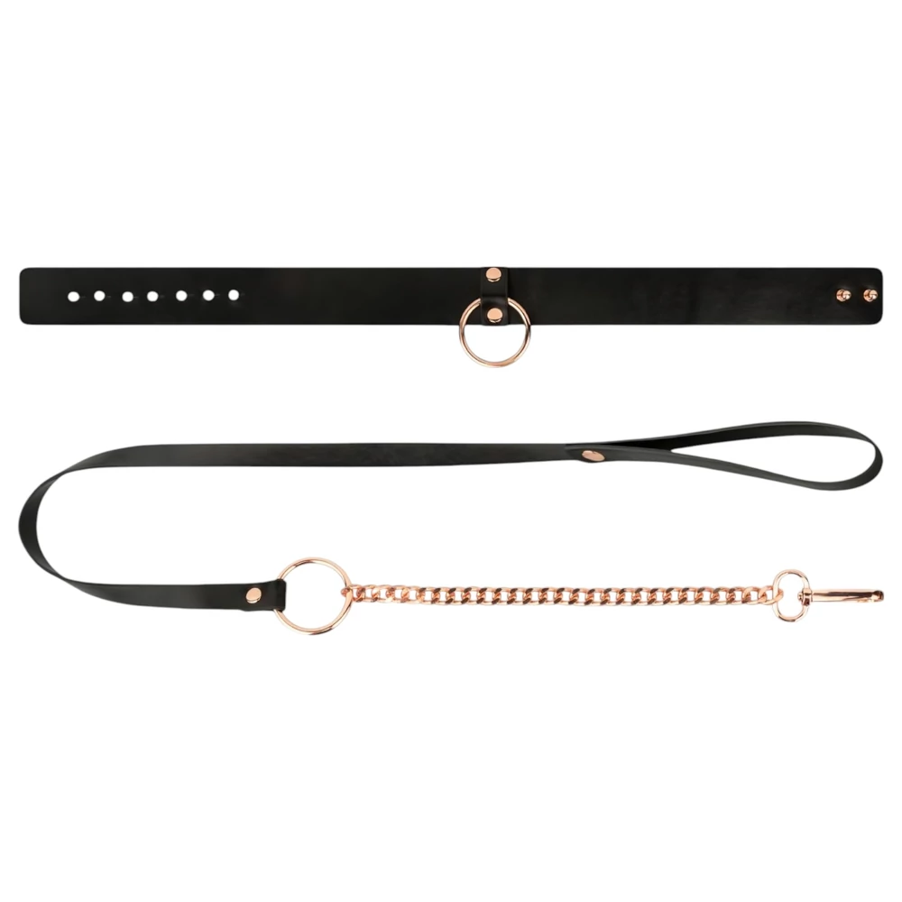 Rosy Gold - nyakörv és póráz (fekete-rózsaarany)
