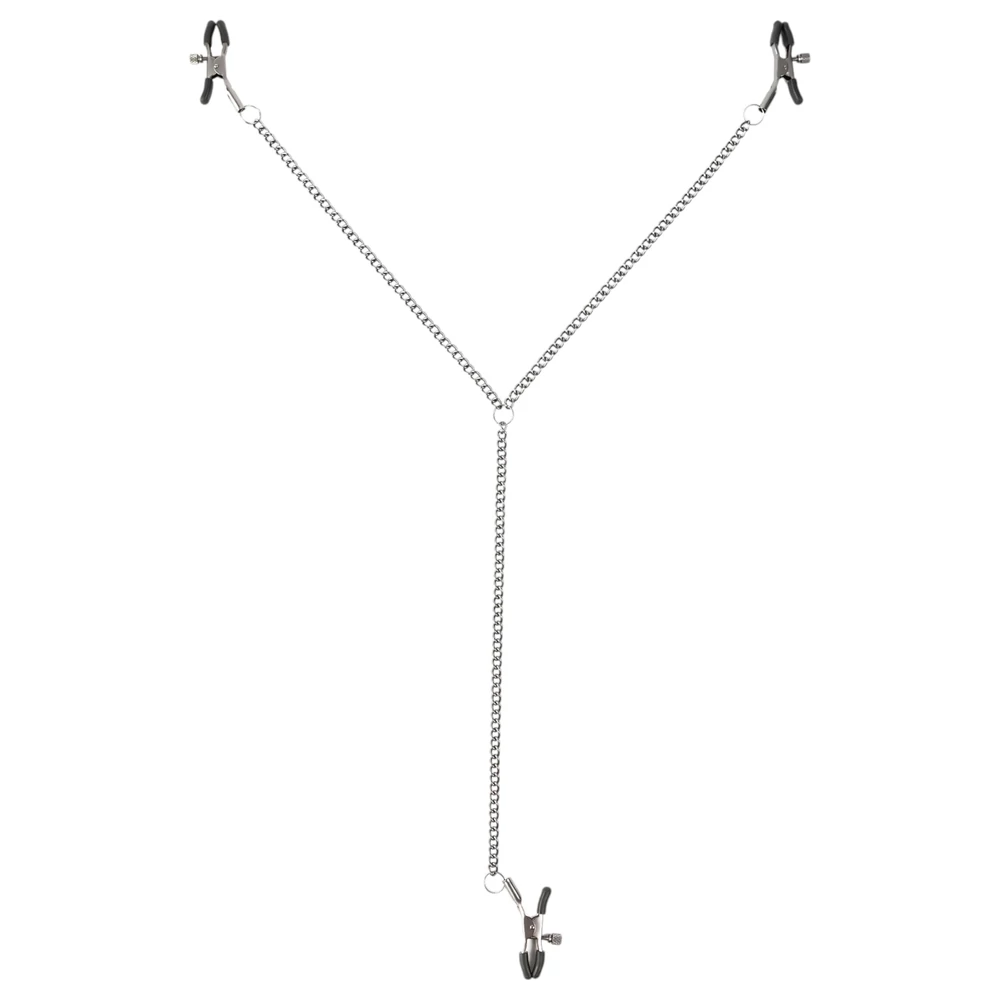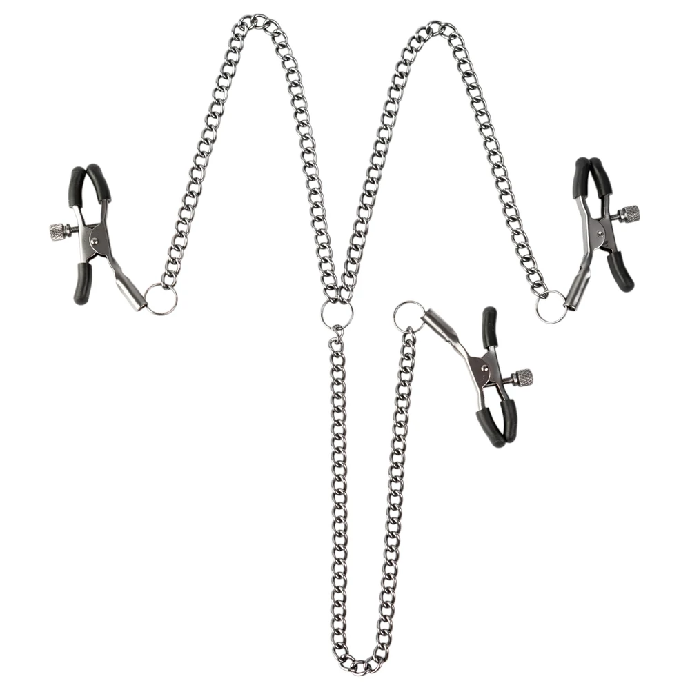 - Óvatosan helyezd a szilikon bevonatú csipeszeket a mellbimbókra és a csiklóra.