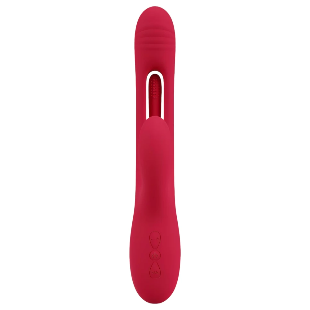 A középső (power) gombot lenyomva tartva a készülék alaphelyzetbe állítható. Ha a gombot tovább nyomogatod, a G-pont szár rezgését tudod váltogatni. Az alsó (hullámos) gombot nyomogatva a csiklókar rezgését tudod szabályozni. A felső gombot nyomogatva a ficánkoló nyelvet tudod szabályozni.