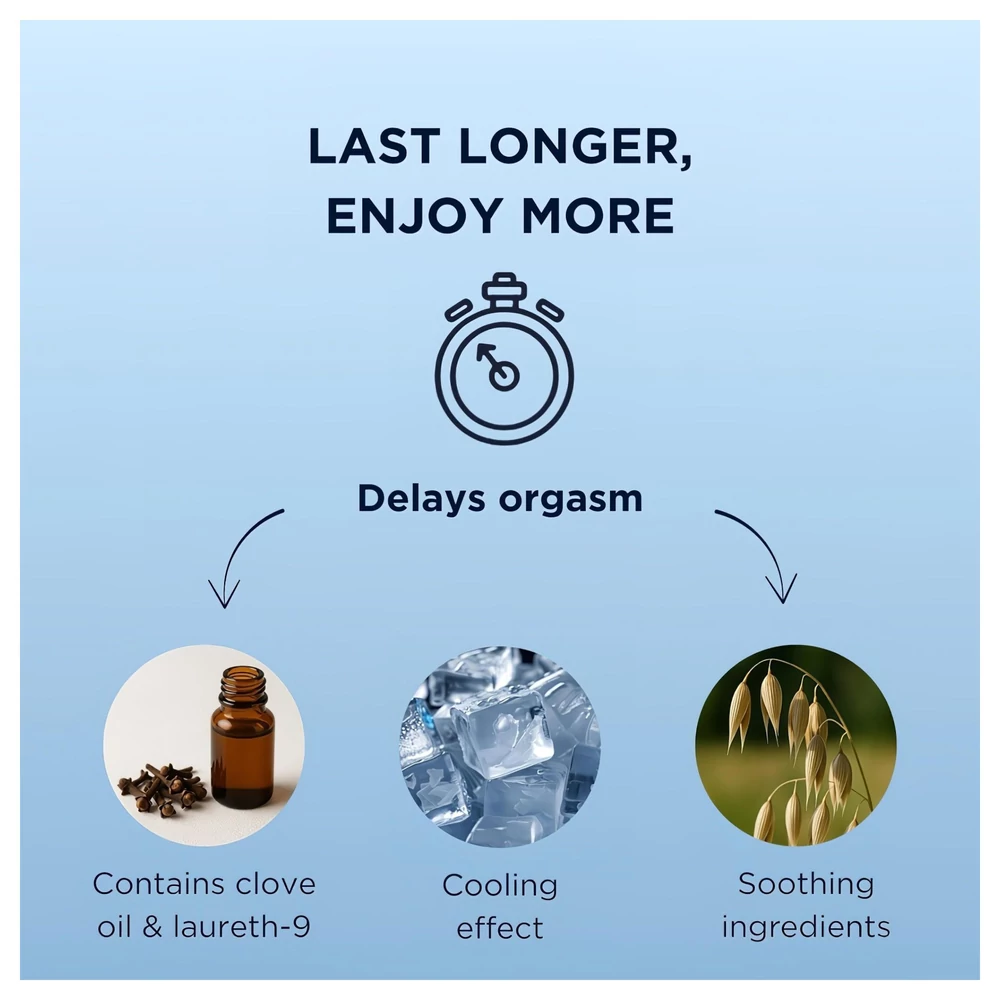 A Mister Size késleltető gél kifejezetten férfiak számára készült, akik szeretnék meghosszabbítani az együttlét örömét anélkül, hogy lemondanának az érzékenységről vagy az élvezetről. Természetes hatóanyagai, mint a szegfűszegolaj és a laureth-9, gyengéden csökkentik az érzékenységet, így segítenek a korai magömlés kontrollálásában. A hűsítő hatás növeli az irányíthatóságot, miközben az orbáncfű- és zabkivonat nyugtatja és ápolja a bőrt.