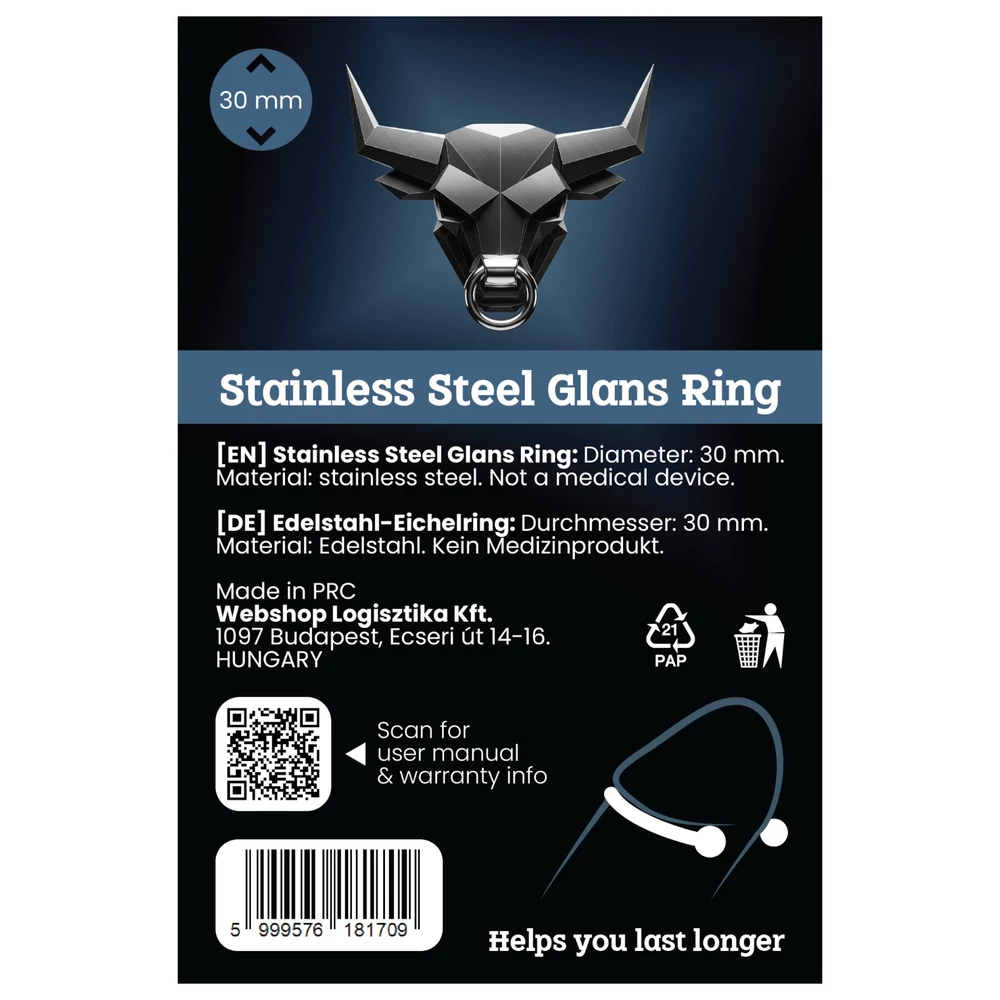 - Precíz kialakítás – 30 mm-es belső átmérőjével kényelmesen illeszkedik a legtöbb férfihoz.