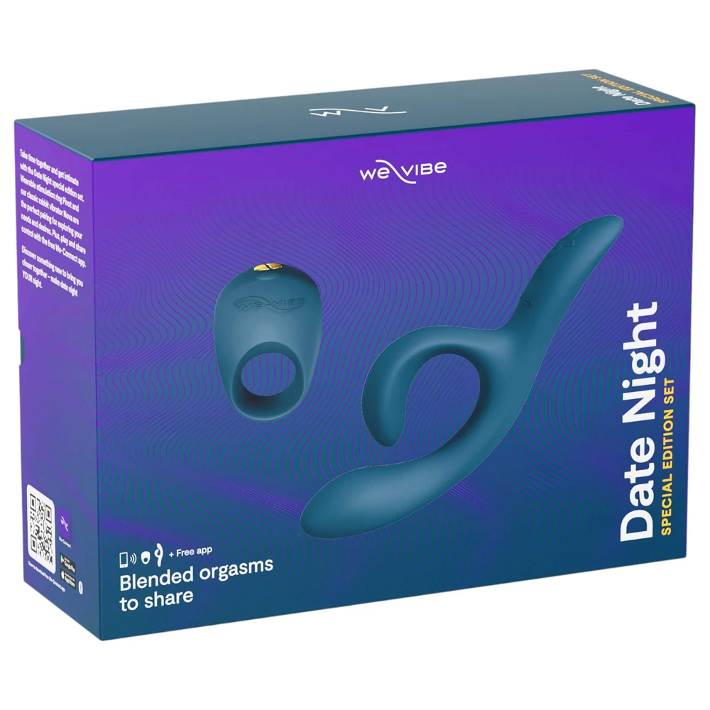 A We-Vibe Date Night – okos vibrátor szett (éjkék) két bestseller prémium játékszert kínál egy csomagban, pároknak és szóló használatra egyaránt – a maximális élményért és kényeztetésért.