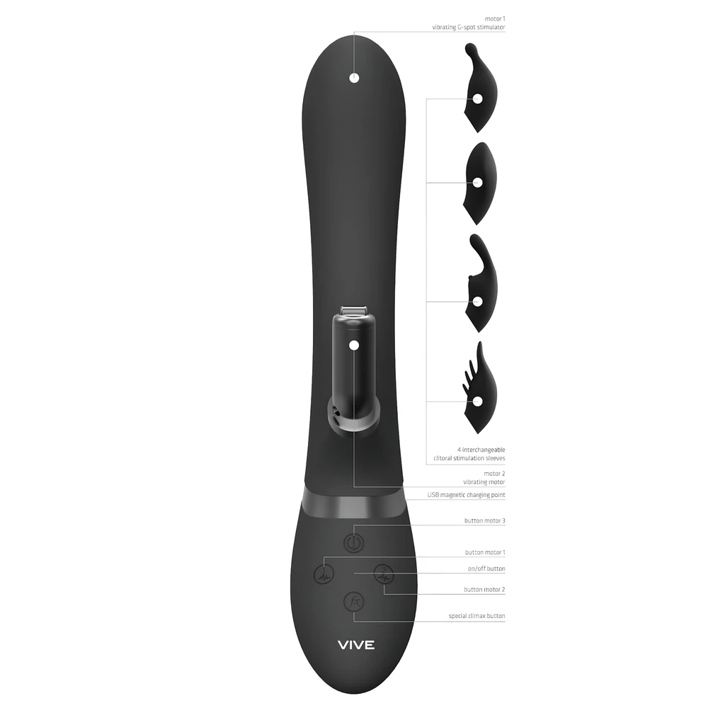 Vive Chou - 4in1 csiklókaros vibrátor (fekete)